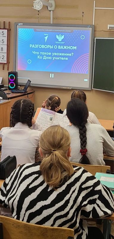 В понедельник, 6 октября, новая учебная неделя традиционно началась с торжественной линейки, поднятия флага и исполнения гимна Российской Федерации.После линейки учащиеся были приглашены на классный час «Разговоры о важном» на тему: «Что такое уважение?». Занятие было посвящено одному из базовых принципов взаимодействия с людьми. Особое внимание уделено уважению к профессии учителя, а также к труду, окружающим, культуре и природе.