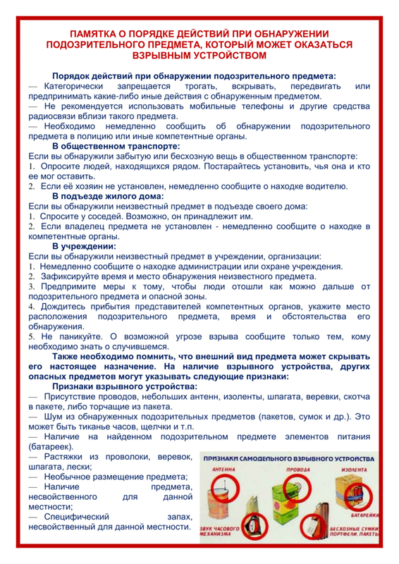 Если Вы обнаружили подозрительный предмет