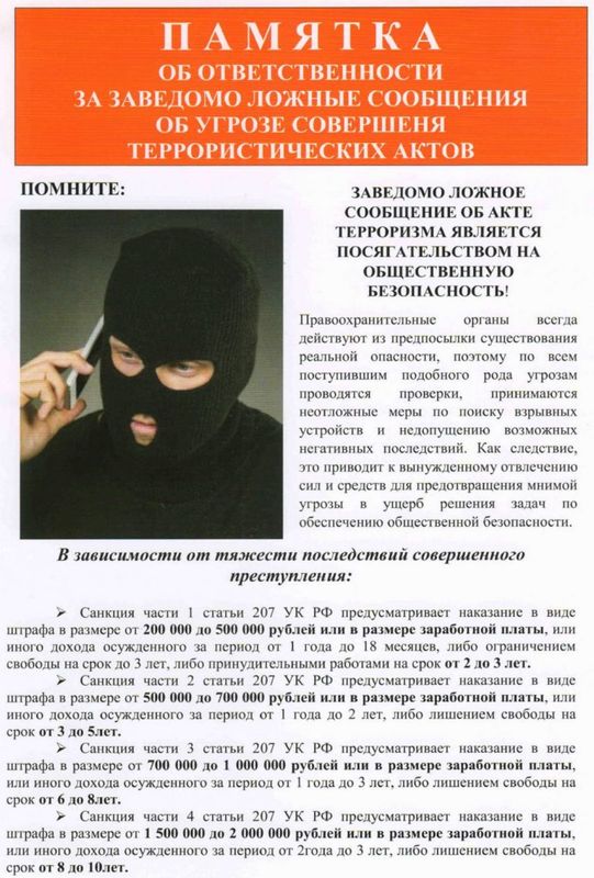 - держать на видном месте список телефонов для передачи экстренной информации в правоохранительные органы.